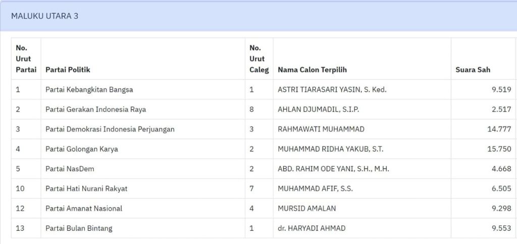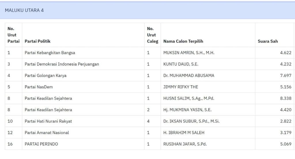 Berikut daftar nama anggota DPRD Maluku Utara terpilih: