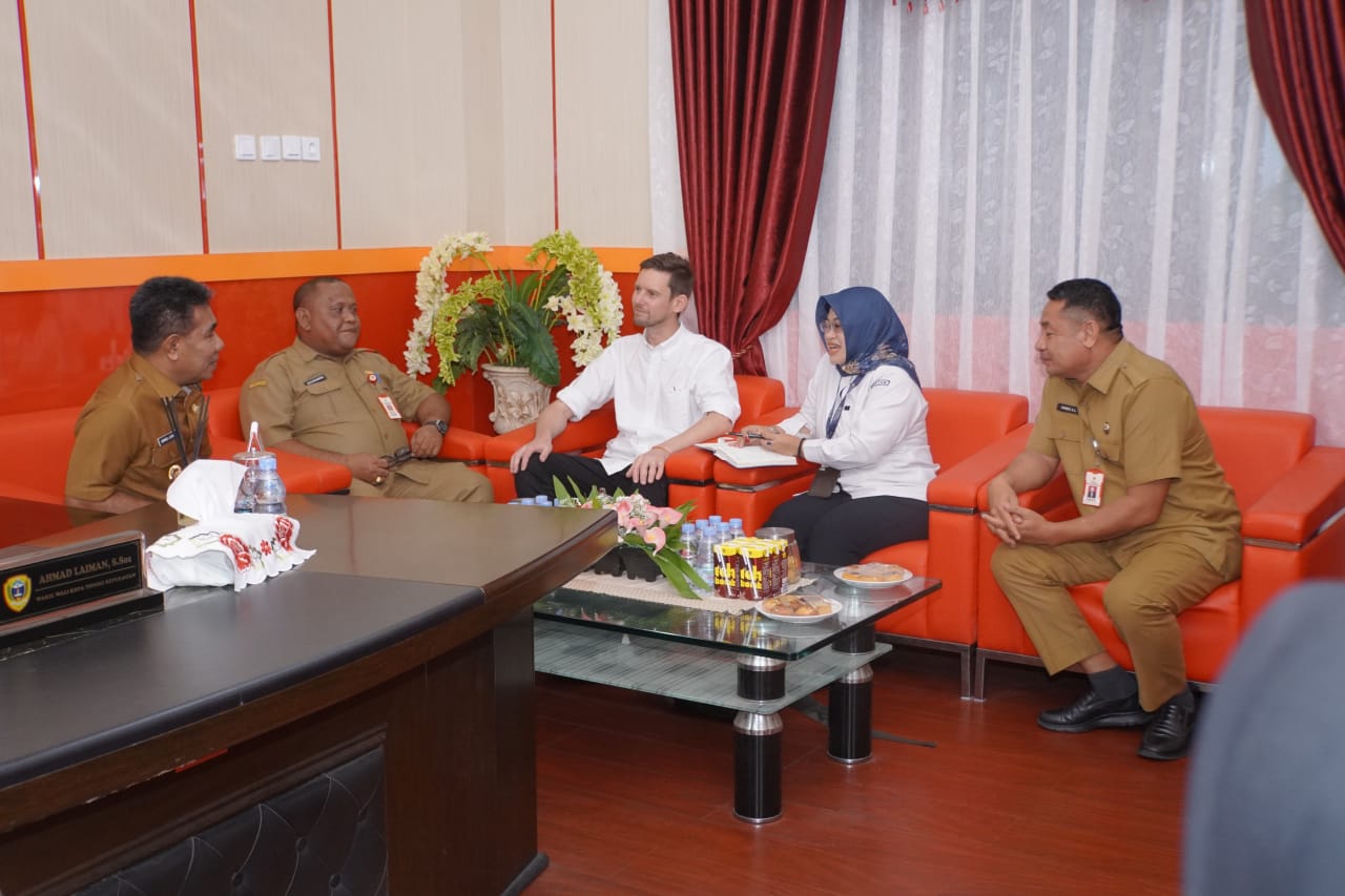 TIDORE – Wakil Walikota Tidore Kepulauan Ahmad Laiman menerima audiensi dari Prof. Dr. Martin Polkinghorne (Assoc. Professor in Archaeology, Flinders University Australia), dan Nia Naelul Hasanah Ridwan, S.S., M.Soc.Sc. (PhD Cand on Maritime Archaeology, Flinders University – Ahli Arkeologi Bawah Air Kementerian Kelautan dan Perikanan) di ruang kerjanya, Senin (7/7/2025).