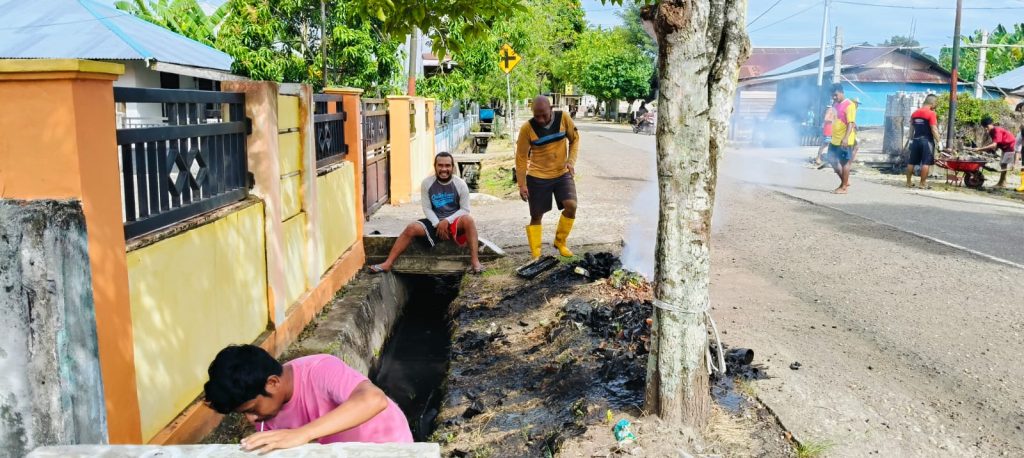 TIDORE- Guna menjaga lingkungan agar tetap bersih dan asri Pemuda dan Masyarakat Lingkungan Koramil RT 007 Kelurahan Payahe, Kecamatan Oba, Kota Tidore Kepulauan, Provinsi Maluku Utara menggelar bakti sosial dengan melakukan pembersihan di area selokan atau drainase.