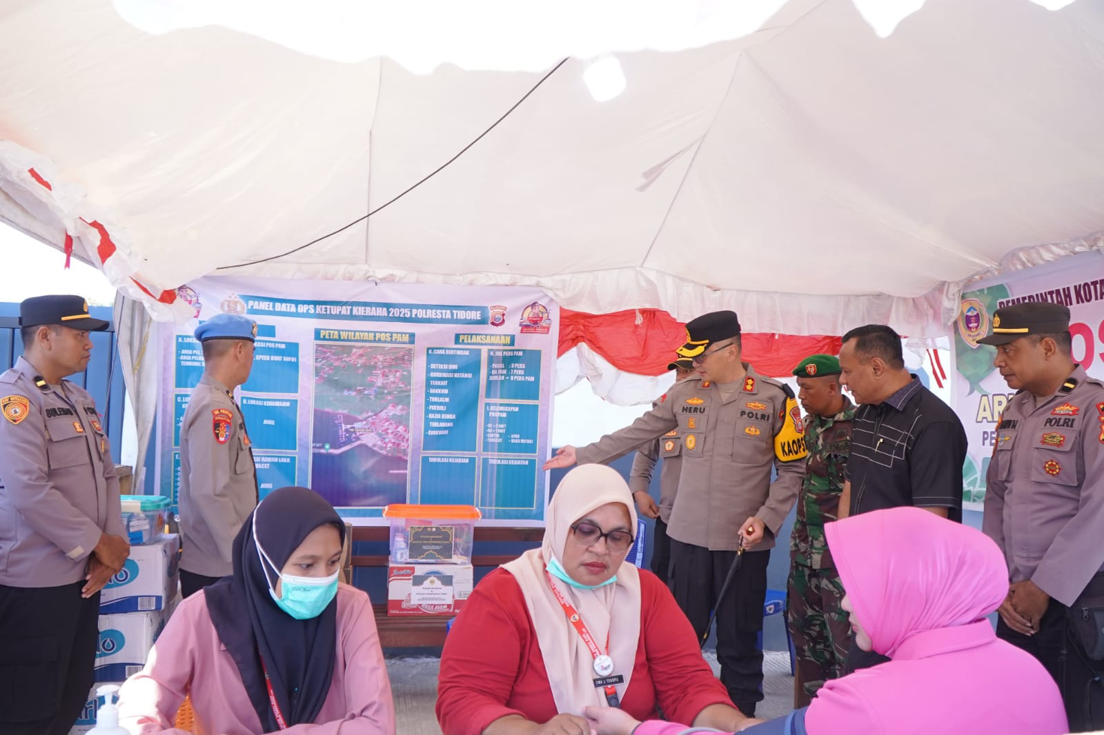 Walikota Muhammad Sinen bersama Kapolresta Heru Budiarto melakukan peninjauan dimulai dari Pos Terpadu Operasi Ketuapat Kieraha di Pelabuhan Penyebrangan Speed Sofifi, Kecamatan Oba Utara kemudian dilanjutkan di Portal Desa Kusu dan Pos Pelayanan Terpadu Pelabuhan Speed Loleo Kecamatab Oba Tengah.