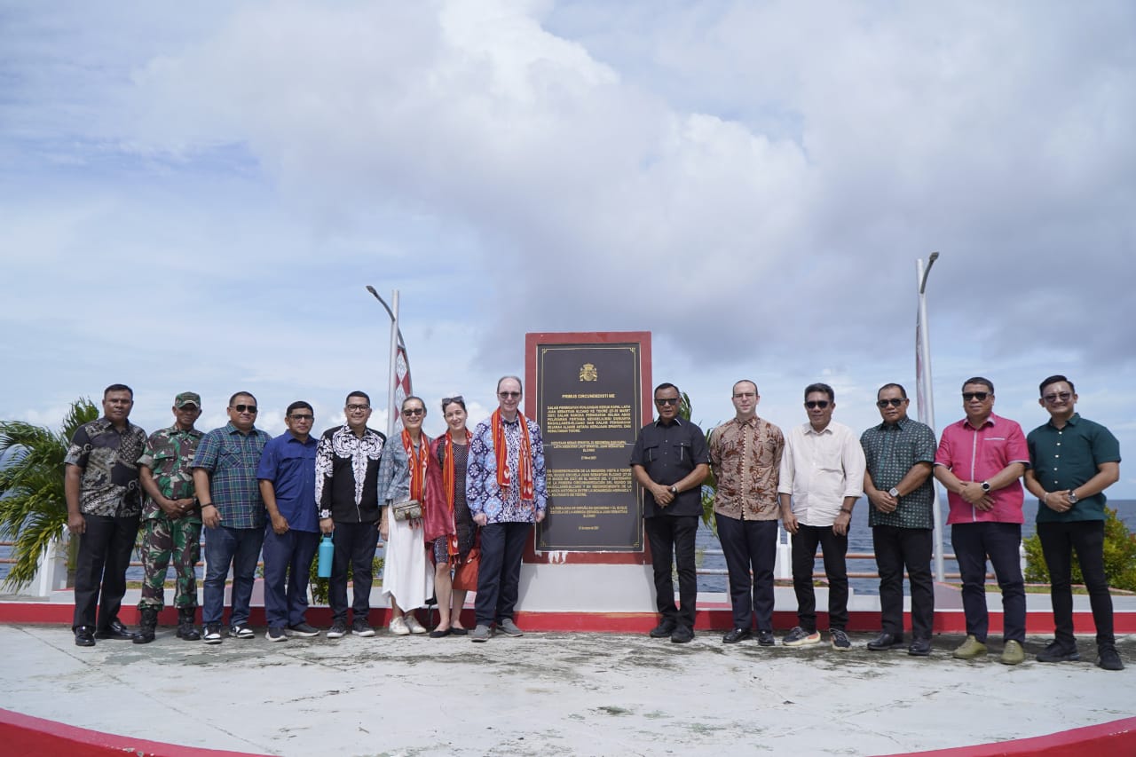 Rombongan Dubes bersama Wali Kota Tidore, Wakil Wali Kota, Sultan Tidore H. Husain Alting Sjah, Ketua TP-PKK beserta Forkopimda melakukan transit di Aula Sultan Nuku, kemudian bersama-sama menuju ke lokasi acara yang dipusatkan di Pelataran Kawasan Wisata Pantai Tugulufa, Minggu (13/7/25).