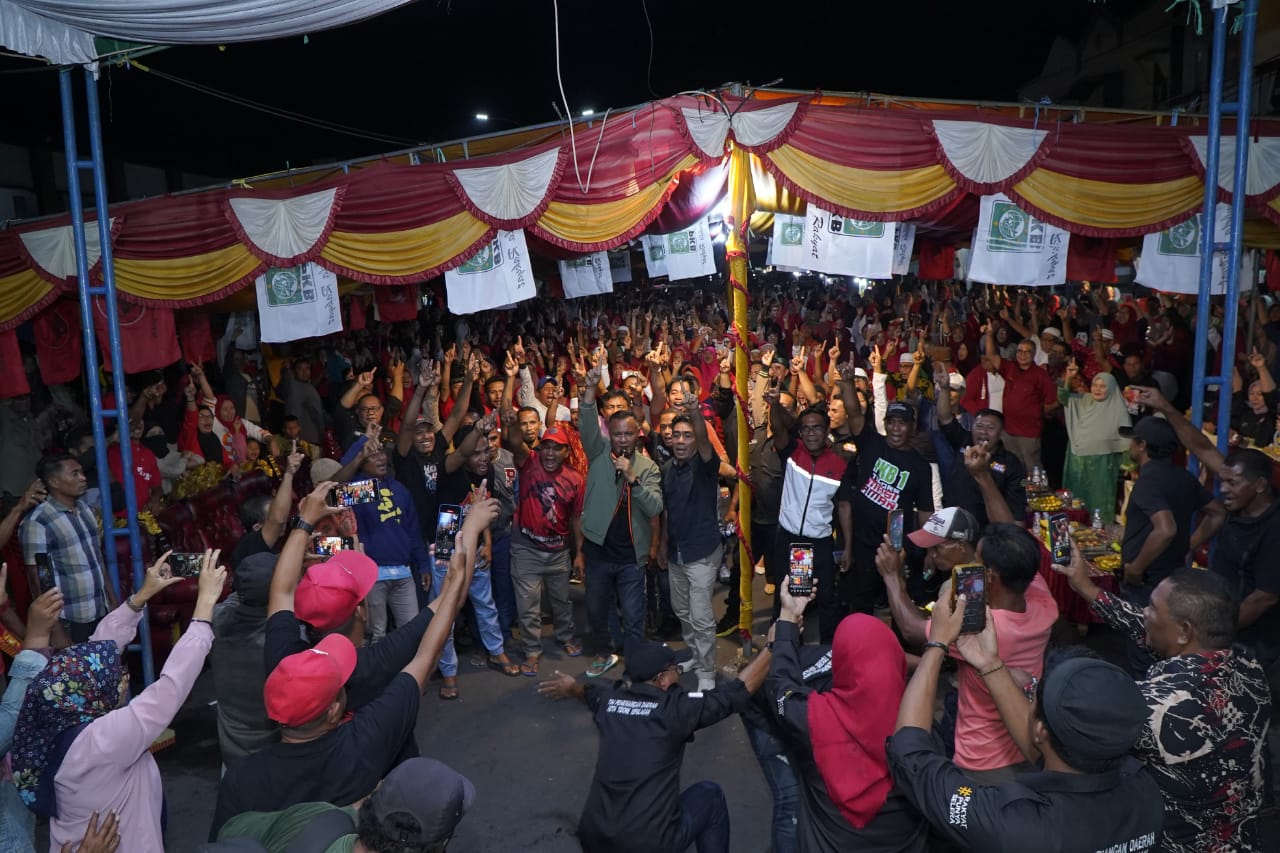 Bahkan puluhan kembang api ikut dinyalakan mewarnai kaki langit sebagai tanda penyambutan. Kampanye tersebut diselenggarakan di depan Pasar Sarimalaha, Rabu, (20/11/24) malam.