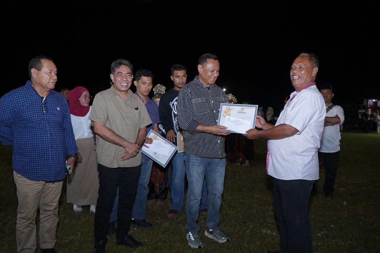 TIDORE- Walikota Tidore Muhammad Sinen didampingi Wakil Walikota Ahmad Laiman dan Ketua DPRD Ade Kama, menyerahkan Sertifikat kemenangan Juara 1 lomba Kebersihan Lingkungan antar RT yang dimenangkan oleh RT 005 Kelurahan Mareku.