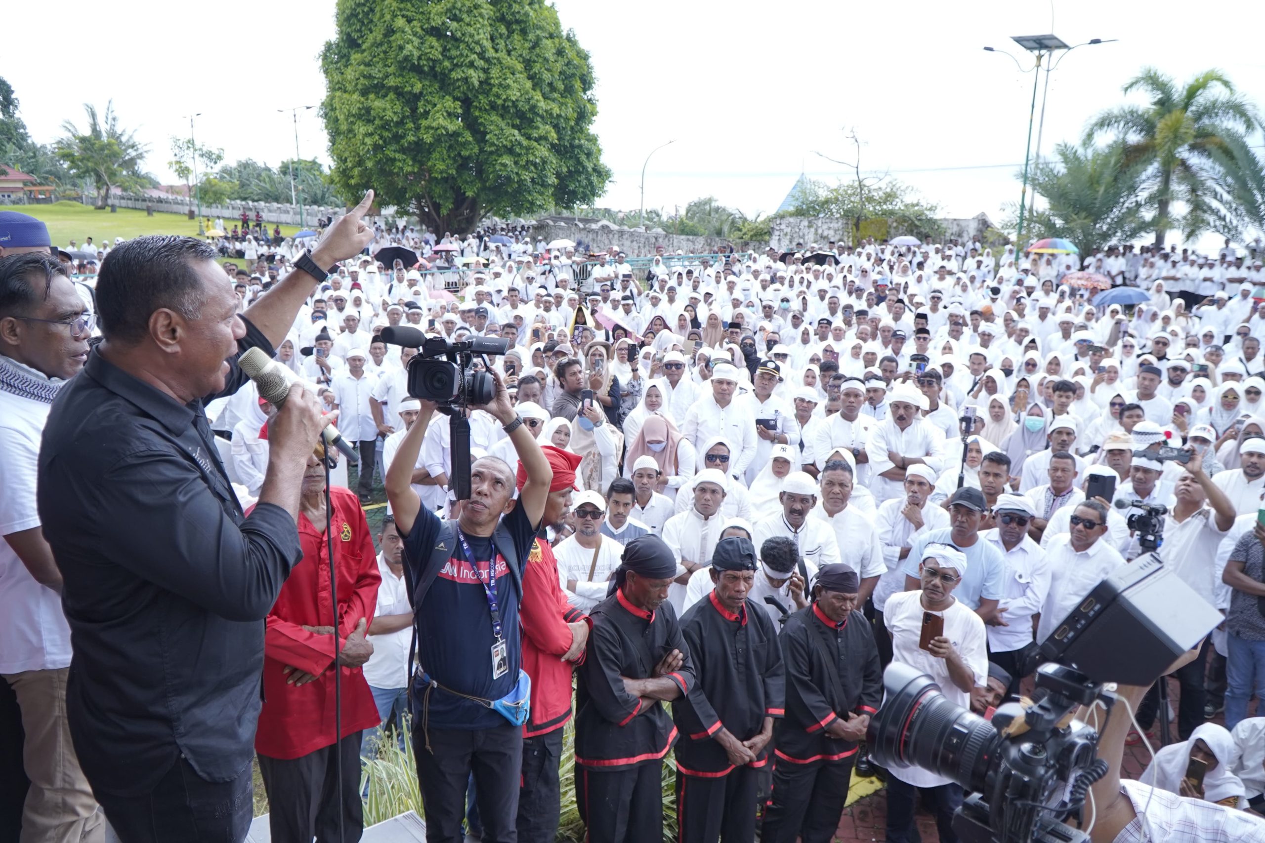 Ribuan Masyarakat Kota Tidore Kepulauan kemudian menggelar aksi apel siaga yang bertempat di Halaman Kadaton Kesultanan Tidore, Kelurahan Soasio, Kecamatan Tidore, Kamis, (17/7/25).